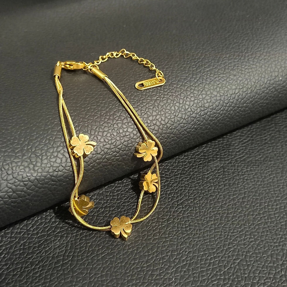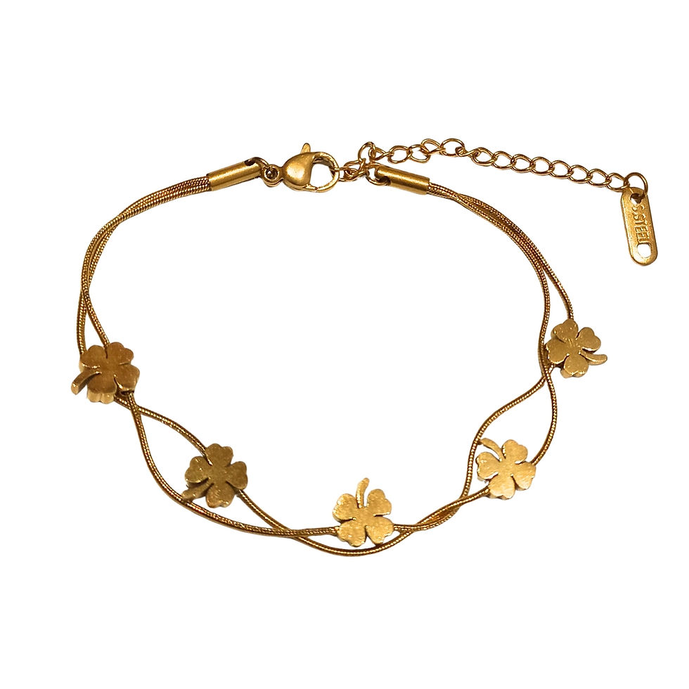 Pulseira Feminina 5 Trevos 17-23cm ajustável Aço Inoxidável 316L Dourada